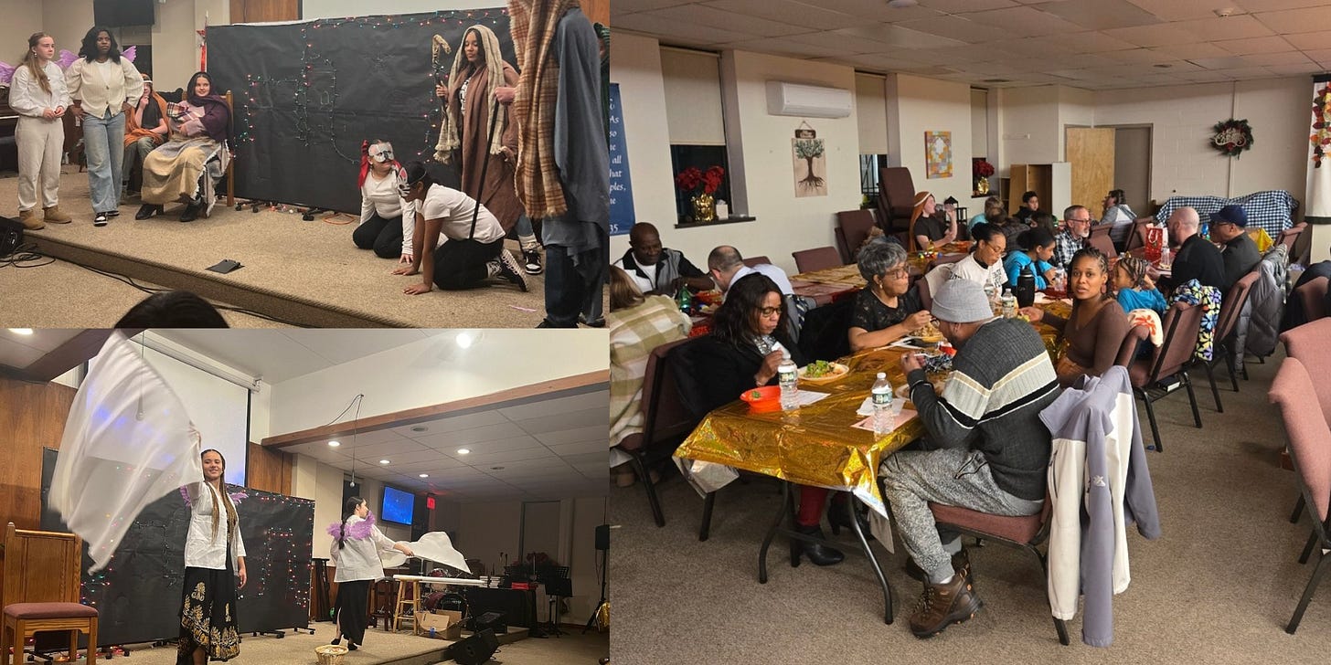 Friday Nite Live (FNL), a ministry of OCMC, held its first-ever Christmas Dinner Theater (video at the bottom). Two years ago, I directed a Christmas play through this ministry with a smaller group and IT WAS EXHAUSTING!! This year, my leaders were more ambitious asking God to help us to do the impossible. The beauty of it was I did not have to direct this time. I selected directors for the four acts and managed the process. A Philadelphia councilmember provided info about a small Philly grant that we receivced for the catering. Praise God!